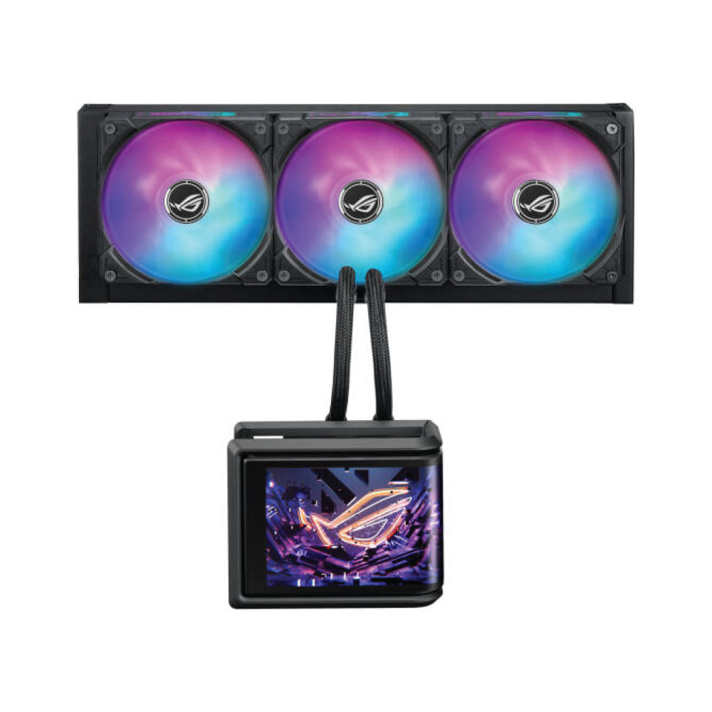 Type: All-in-One Liquid CPU Cooler | Radiator Size: 360mm | Display: 6.67″ AMOLED | Fans: 3 ? ROG RYUO IV MF-12C ARGB | Fan Speed: Up to 2000 RPM | Airflow: 56.66 CFM | Bearing Type: Advanced | Noise Level: Low | Pump: Asetek Emma Gen8 V2 | Backplate: Premium Metal | Tubing: Durable | Compatibility: Intel & AMD Sockets | Installation: Tool-free | Color: Black