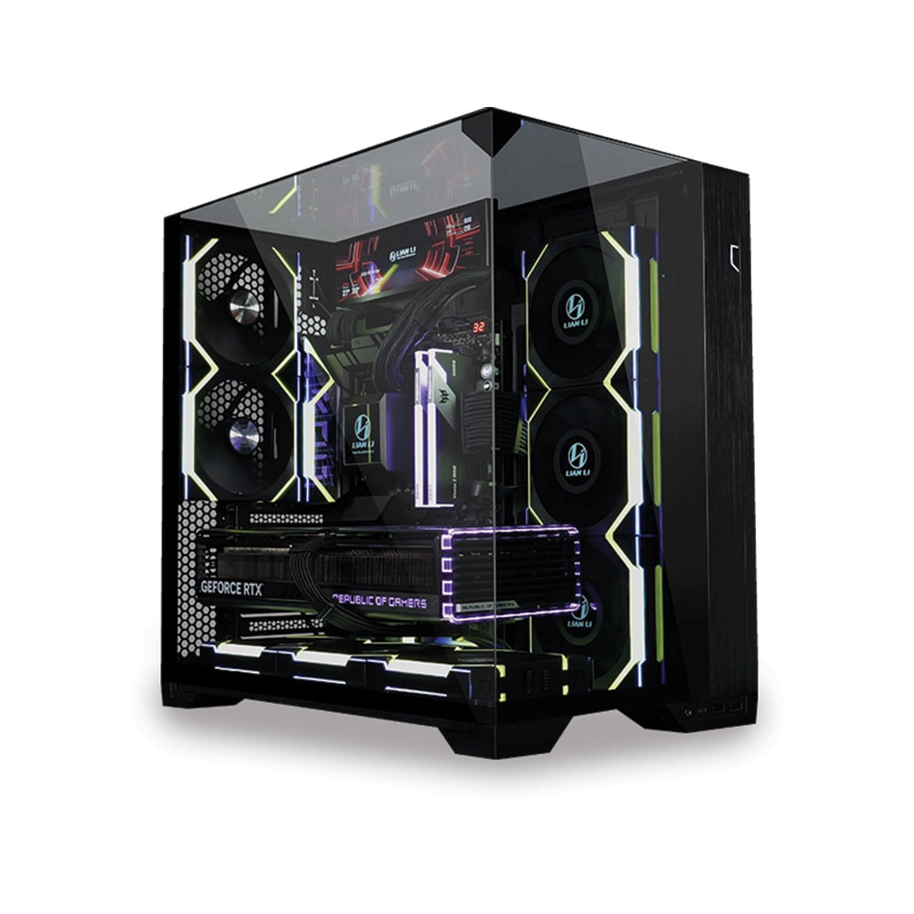 The Lian Li O11 Vision Compact Tower combines style and functionality with dual tempered glass panels (4mm front, 3mm side) and steel & aluminum construction. It supports up to a 360mm radiator and nine 120mm fans, offering versatile cooling options. Featuring Vision mode for an uninterrupted component view and Mesh mode for additional airflow, the case also includes a dual-chamber layout with cable management compartments and hidden AIO tube design for a clean, organized build.