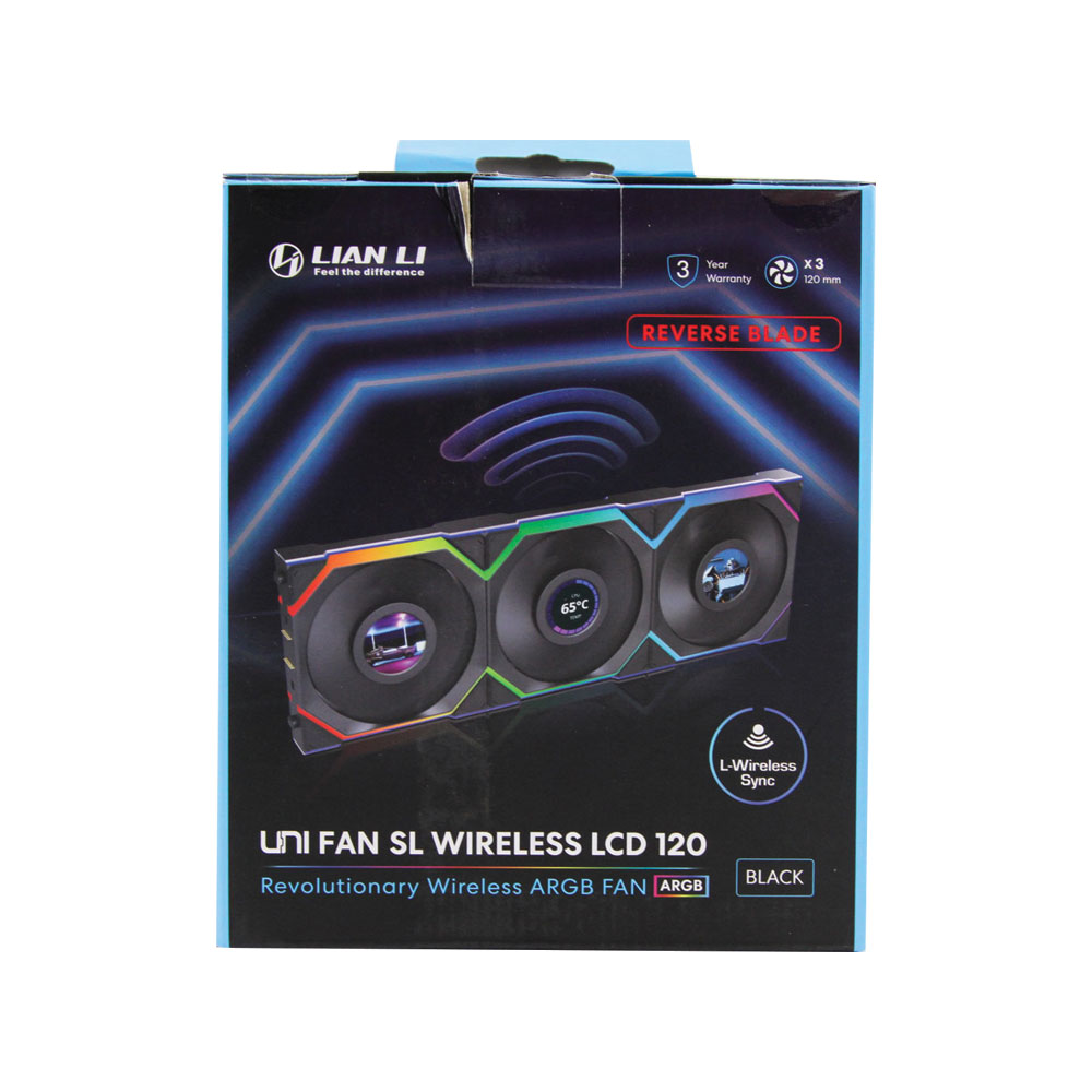 The Lian-Li UNI FAN TL120 LCD Reverse Blade Wireless is an advanced case fan designed for enthusiasts who want high performance and stunning visual customization. Featuring a 1.6″ LCD screen, it supports MP4, JPG, PNG, and GIF files for personalized display and real-time system monitoring. Managed wirelessly via a 2.4GHz controller with daisy-chain support, it allows easy fan synchronization and control. Its reverse blade design, infinity mirror effect, and 26 ARGB LEDs deliver a unique aesthetic, while the fan provides excellent airflow and static pressure for efficient cooling in demanding builds. Durable construction with fluid dynamic bearings and high-quality materials ensures long-lasting operation.