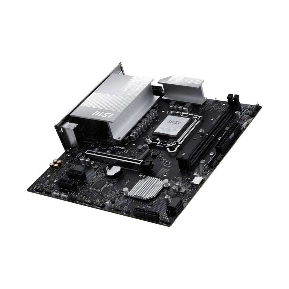 The MSI PRO H810M-B is a Micro-ATX motherboard designed for Intel? LGA 1851 processors (Core? Ultra Series 2). It supports DDR5 memory up to 128GB across 2 UDIMM slots with Memory Boost technology for stable, high-performance operation. The motherboard features 1x PCIe x16 slot and a Lightning Gen 4 x4 M.2 slot for high-speed storage. Core Boost with premium layout ensures reliable power delivery for multi-core CPUs, while Frozr Guard with extended heatsinks and MOSFET thermal pads provides superior thermal management. Built-in 2.5G LAN and Audio Boost deliver fast networking and studio-grade sound for immersive experiences. EZ DIY features such as EZ M.2 Clip II and EZ PCIe Clip II simplify installation.